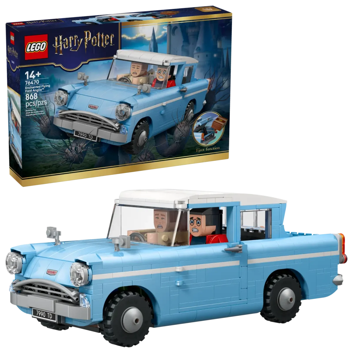 Put the magic of the Weasleys’ Enchanted Flying Ford Anglia™ in the hands of young wizards, witches and Muggles™ with this car toy building set (76470) for display and play. A super Harry Potter™ gift for boys, girls and any fans ages 10 years oldand up, it is the most detailed LEGO® brick model to date of the iconic vehicle. Place brick-built Ron Weasley™ and Harry Potter figures in the car with Harry’s pet Hedwig™ to bring Harry Potter and the Chamber of Secrets™ scenes to life. Activate magi cal functions to make the trunk and doors open and send our heroes’ luggage flying out of the trunk, just like in the movie. Kids can build with confidence using the LEGO® Builder app, which lets them zoom, rotate in 3D and track progress with easy-to-follow digital instructions. Set contains 868 pieces.